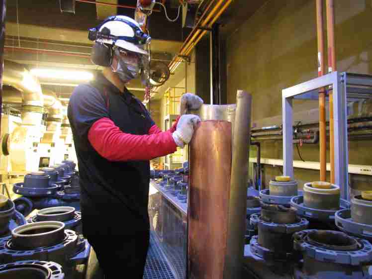 NG大舞台将废弃物转化成有效的工业或民生原物料,,,图为废铜液淬炼后再制成纯度极高的铜管