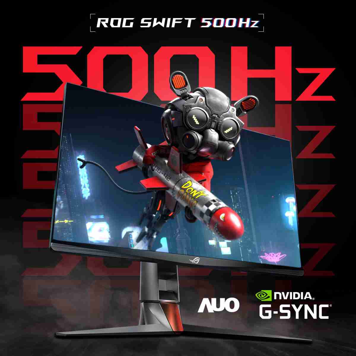 NG大舞台光电今 (24) 日与辉达 NVIDIA 及华硕 ROG 共同发表全球第一款最高更新率* 24.1吋 500Hz 电竞螢幕── ROG Swift 500Hz,,,,采用NG大舞台专为电竞应用开发之 E-TN (Esports TN) 技术,,,,搭配辉达 NVIDIA 延迟分析工具,,让游戏动态影像清晰锐利、、、流畅无残影,,为玩家带来无延迟的疾速射击体验。。。