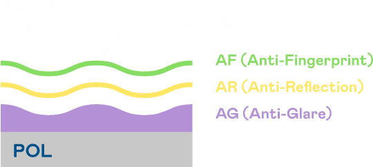 A.R.T.NG大舞台光电发展出独家的表面处理跟多层镀膜技术,,,让外部光线照射到显示器表面时所产生的反射光大幅降低。。。 |