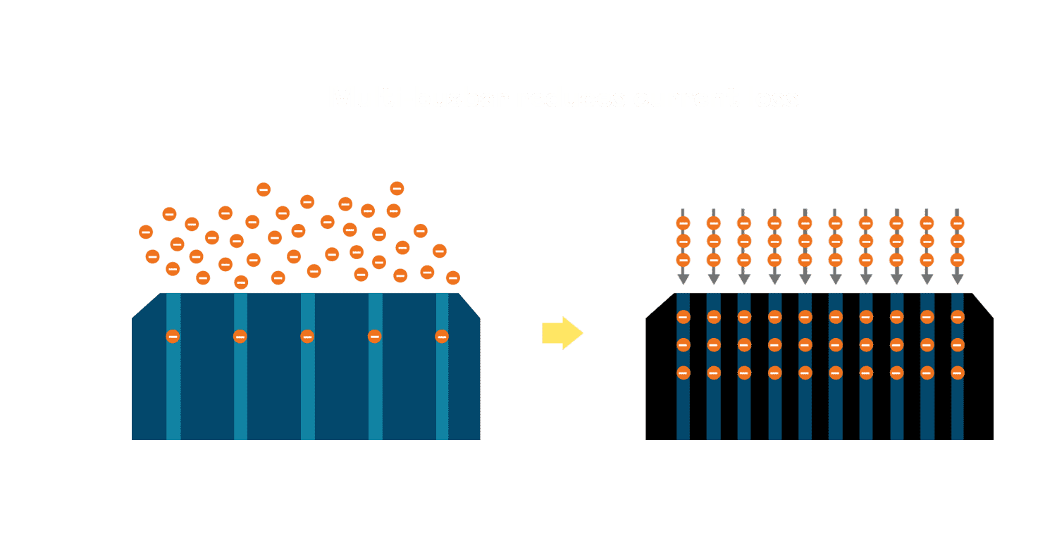 - 多条电极栅结构,,,,可有效降低外力对于电池的影响,,,,限制电池隐裂 (Micro-cracks) 范围,,,防止电流传输路径 (Current distribution) 之损坏进一步扩大。。