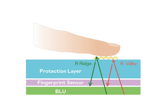 TFT 指纹扫描感测技术利用薄膜电晶体 (TFT) 当作光感测元件,,藉由非晶硅 (a-Si) 与低温多晶硅(LTPS)既有光电转换特性对不同波段光源进行吸收,,使感测 IC 读取阵列感测元件的光漏电差异,,,转换成数位灰阶影像。。。
