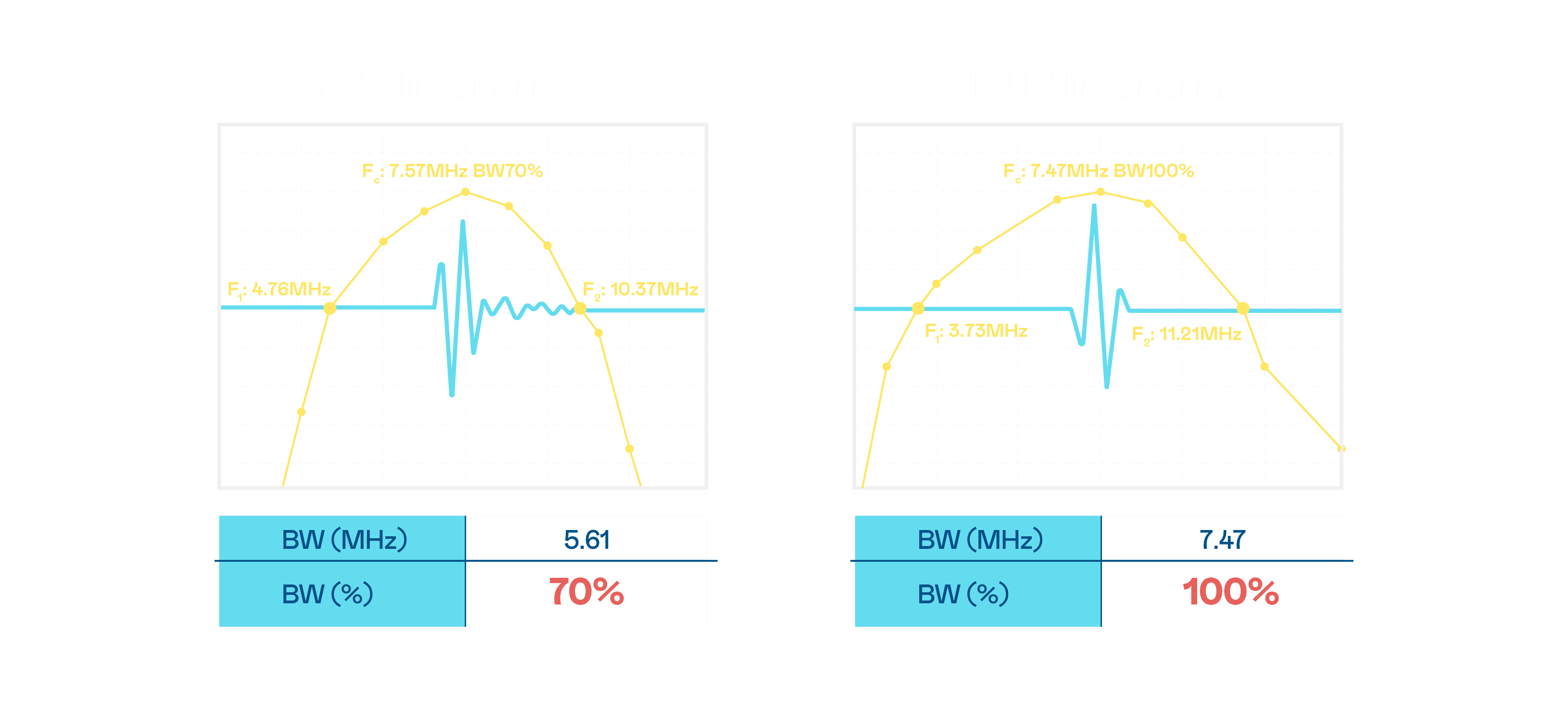 超音波影像的解析度高低,,,首先取决于探头能发出的讯号频宽。。。NG大舞台 CMUT 可提供高清晰的超音波讯号,,,提供高频宽、、、、高灵敏度、、、影像纹理细节更高的超音波影像,,协助医护人员缩短影像判读时间及利用精准的医疗影像进行诊断。。。